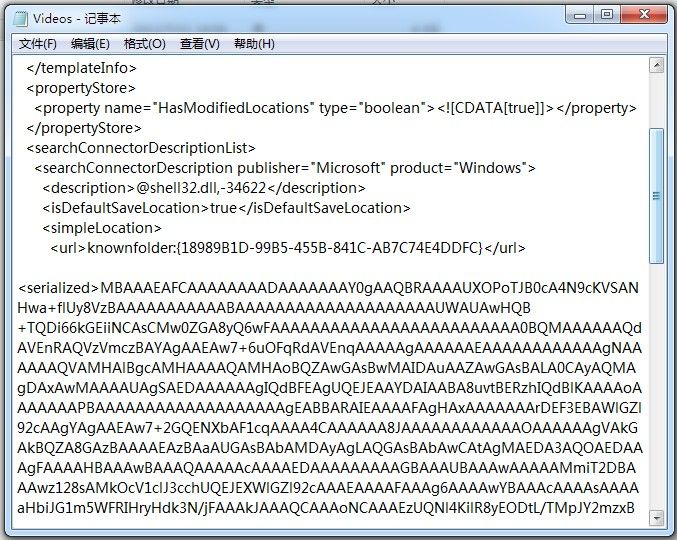 其实库是 Windows 7 中一种特殊的文件类型(.library-ms),就像快捷方式(.lnk)、收藏夹(.url)一样,我们用记事本编辑它,就可以设置它的名称、包含路径和显示图标等。库文件存放在系统盘的%USERPROFILE%\AppData\Roaming\Microsoft\Windows\Libraries,我们现在将刚刚新建的库文件拖入记事本:
