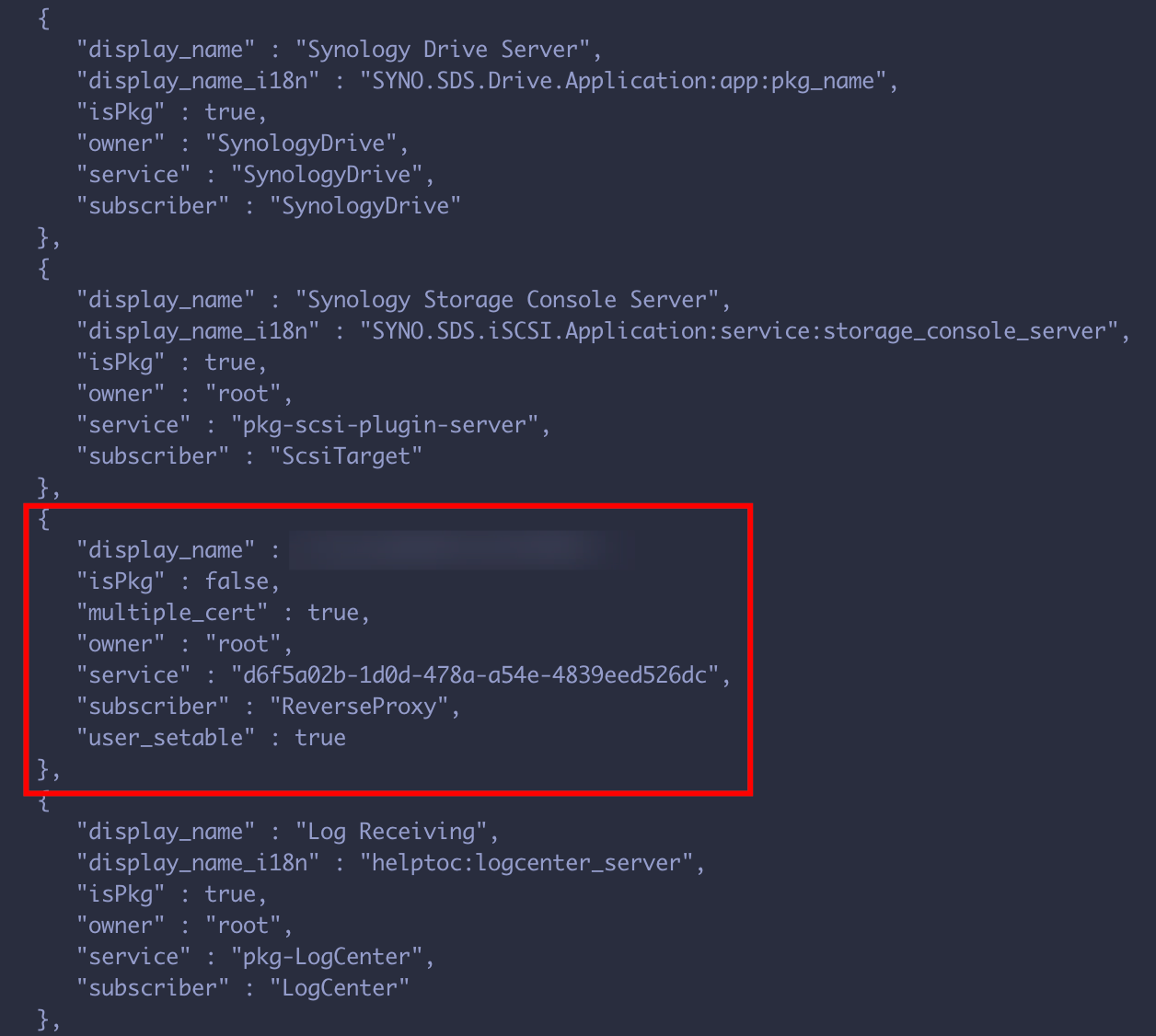 删除群晖 Synology 证书设置中自定义的服务