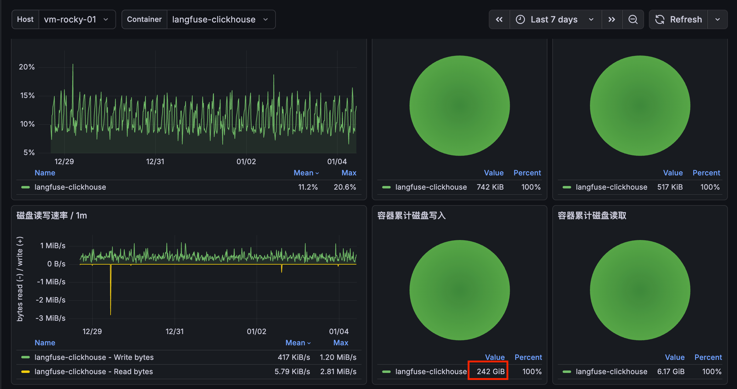 最近在研究 Langfuse,用 docker 部署了一套,但是发现空载的情况下 ClickHouse CPU 占用也不低,并且磁盘持续在写入,一不注意,7 天已经写入了 200 多 GB。